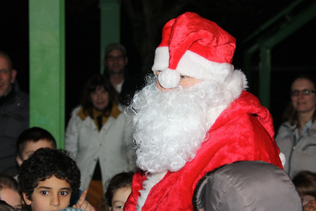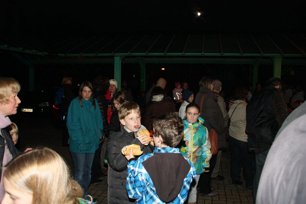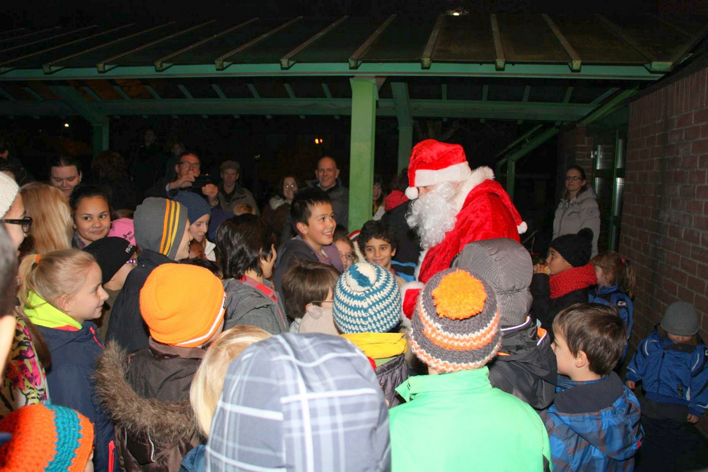 Das Ende der Weihnachtsfeier fand dann wieder vor dem GMZ auf unserem Weihnachtsmarkt bei Glühwein und Würstchen statt, wo auch der Weihnachtsmann kam und für die Kleinsten wieder Geschenke dabei hatte.