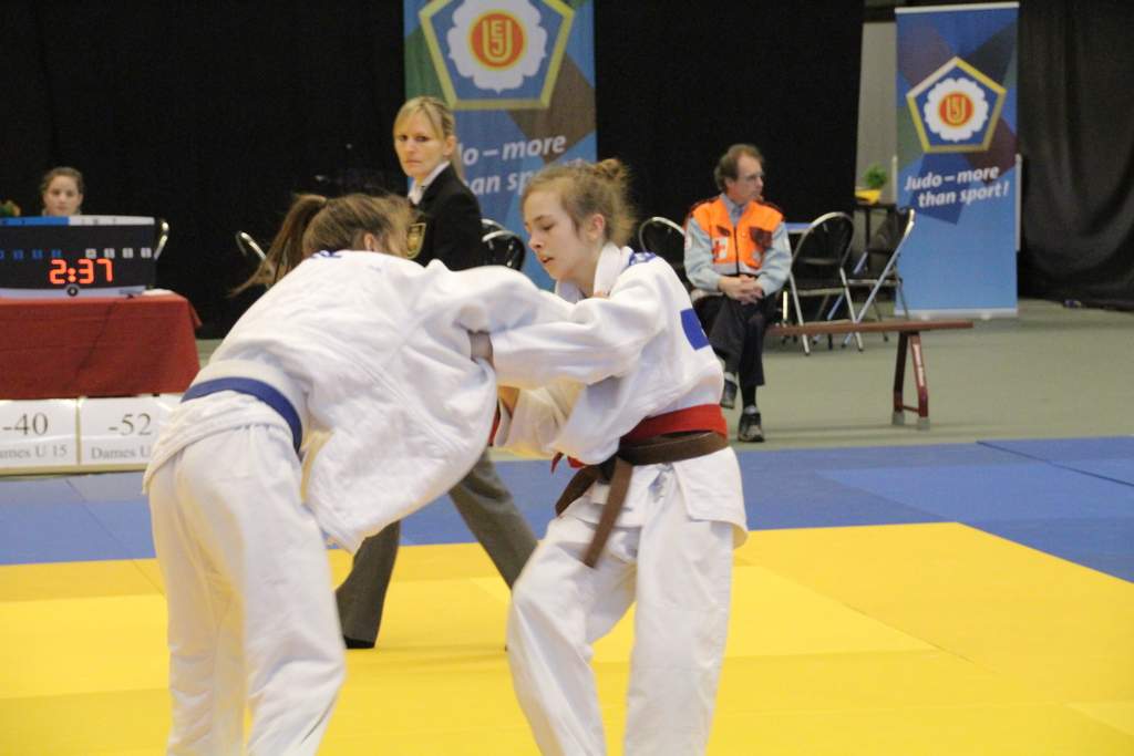 Leidtragende war Sara Pulfer, die eigentlich auch locker Siegerin des Turniers bis 52 Kg hätte werden können, doch leider ist in Belgien der Sankaku verboten, was wir vorher nicht wussten, wofür Sara im zweiten Kampf disqualifiziert wurde.